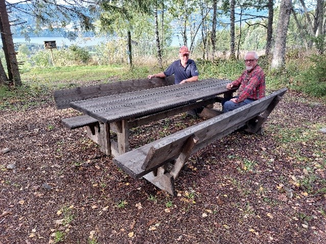 Turen går i første omgang gjennom Kulturstien hvor vi tar oss tid til å stoppe ved plakatene som er satt opp. Vendepunktet blir ved Speiderplassen hvor det er flott utsikt ut over Mjøsa.