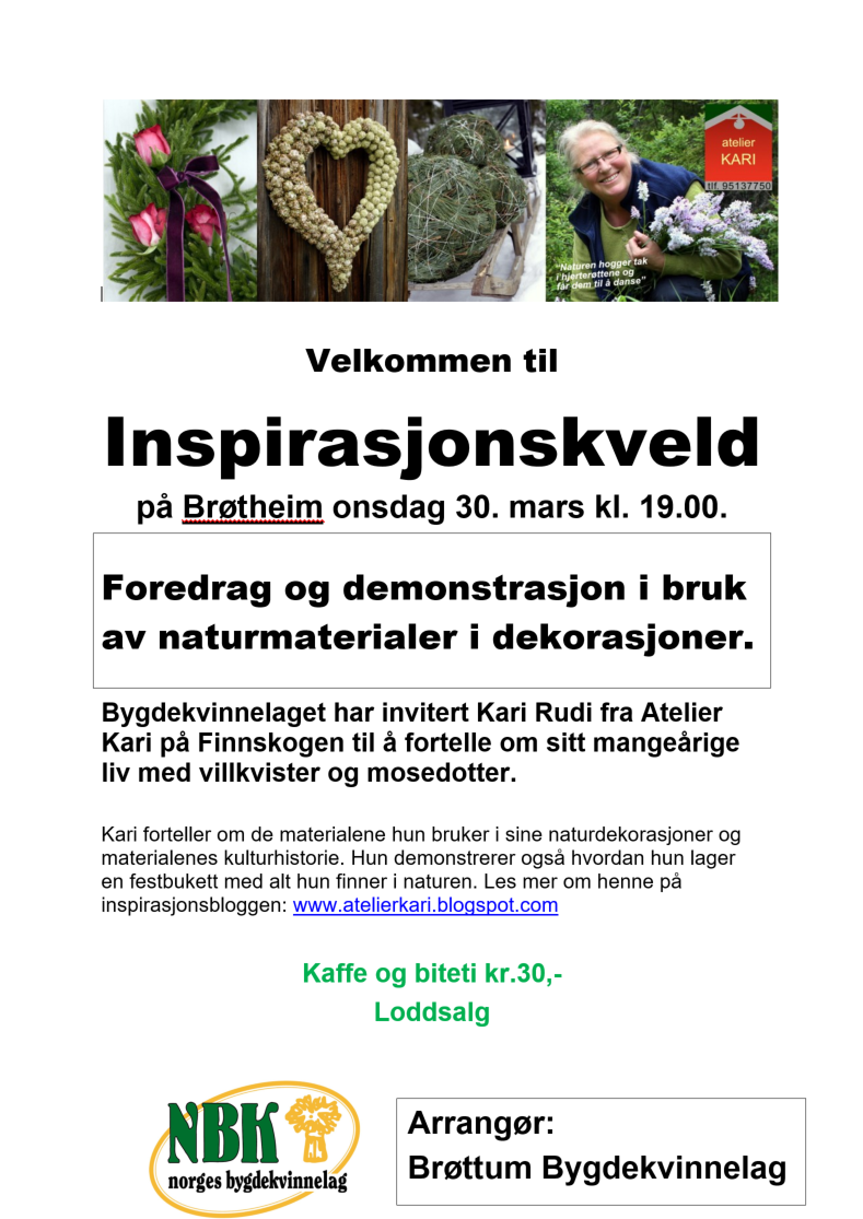 Foredrag og demonstrasjon i bruk av naturmaterialer i dekorasjoner.